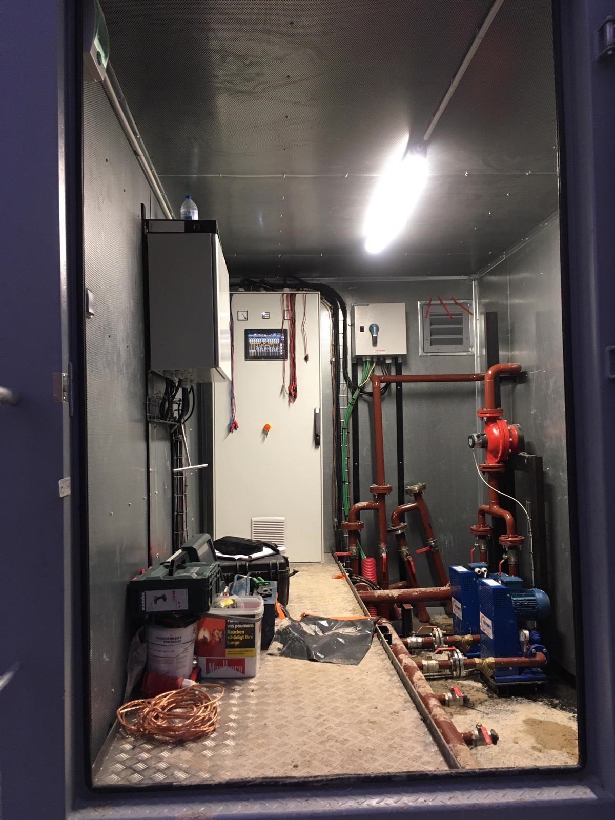 This supply system consists of 2 containers equipped with fuel pumps with redundancy circuits. They have a capacity of 8000l/h each pumping in 4 tanks of 120m3 with 30m of altitude difference.